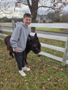 On a crisp, russet-toned fall afternoon, the Farm 101 Skills Incubator class traveled to Kindness Matters Animal Sanctuary in Avon, a peaceful four-acre haven tucked quietly off bustling Waterville Road, so hidden that you’d never know rescued animals, donkeys, sheep, and goats call it home. For many of the animals on the property, Kindness Matters is the first place they have ever experienced consistent compassion, medical care, and gentleness. As the director of the farm said, “All animals that were unwanted, neglected, or used, and they come here to live out their lives, get wonderful healthcare, but most of course, importantly, love and compassion”. It’s a relatively spa-like life, and the animals do not need to work or produce milk. The sanctuary opened in 2019, just three months before COVID-19, and welcomed its first two donkeys in September 2020. To the volunteers’ surprise, both were pregnant, leading to the arrival of two baby donkeys who today roam the sanctuary’s pastures.
