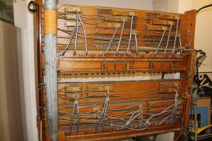 the Hammond organ. He explained that the Skinner organ was generously donated by Ms. Holly Soby, during the renovation of Seaverns Hall in 1986. The installation of the elegant console sitting on the main floor and pipes hidden in the balcony was no small feat. The console is on a roll-out platform with cables connecting all the lines. A local company was called in to make it playable but it became too expensive to complete the project. Fortunately, it was playable, but with limitations. It is a player organ but the “player part” was never installed. The organ was first played for the KO community at the Candlelight Concert in 1987. Former faculty member, David Almond, played a Prelude on the organ at the dedication ceremony of Seaverns Hall in 1987. As time passed, the Skinner organ became forgotten until our very own KO students, David Marottolo ‘18 and Nate Welsh ‘22, took an interest in playing it.